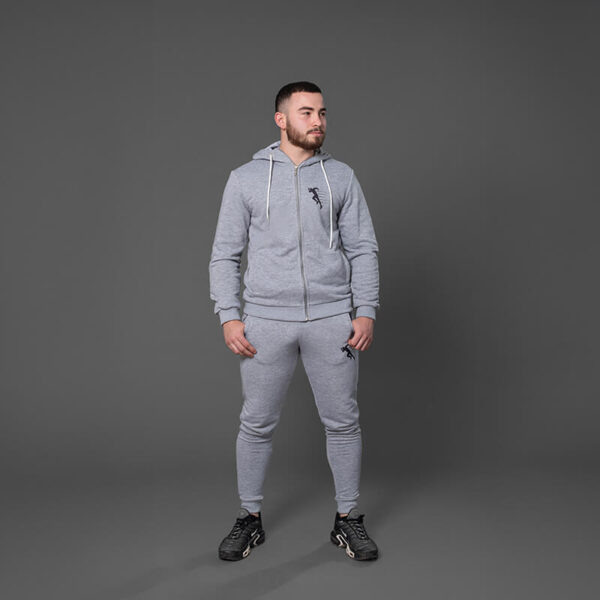 Mekana i udobna muška siva pamučna trenerka (80% pamuk, 20% poliester). Prozračna, postojana i praktična za svaki dan. Kombinuje udobnost, jednostavnost i moderan stil.